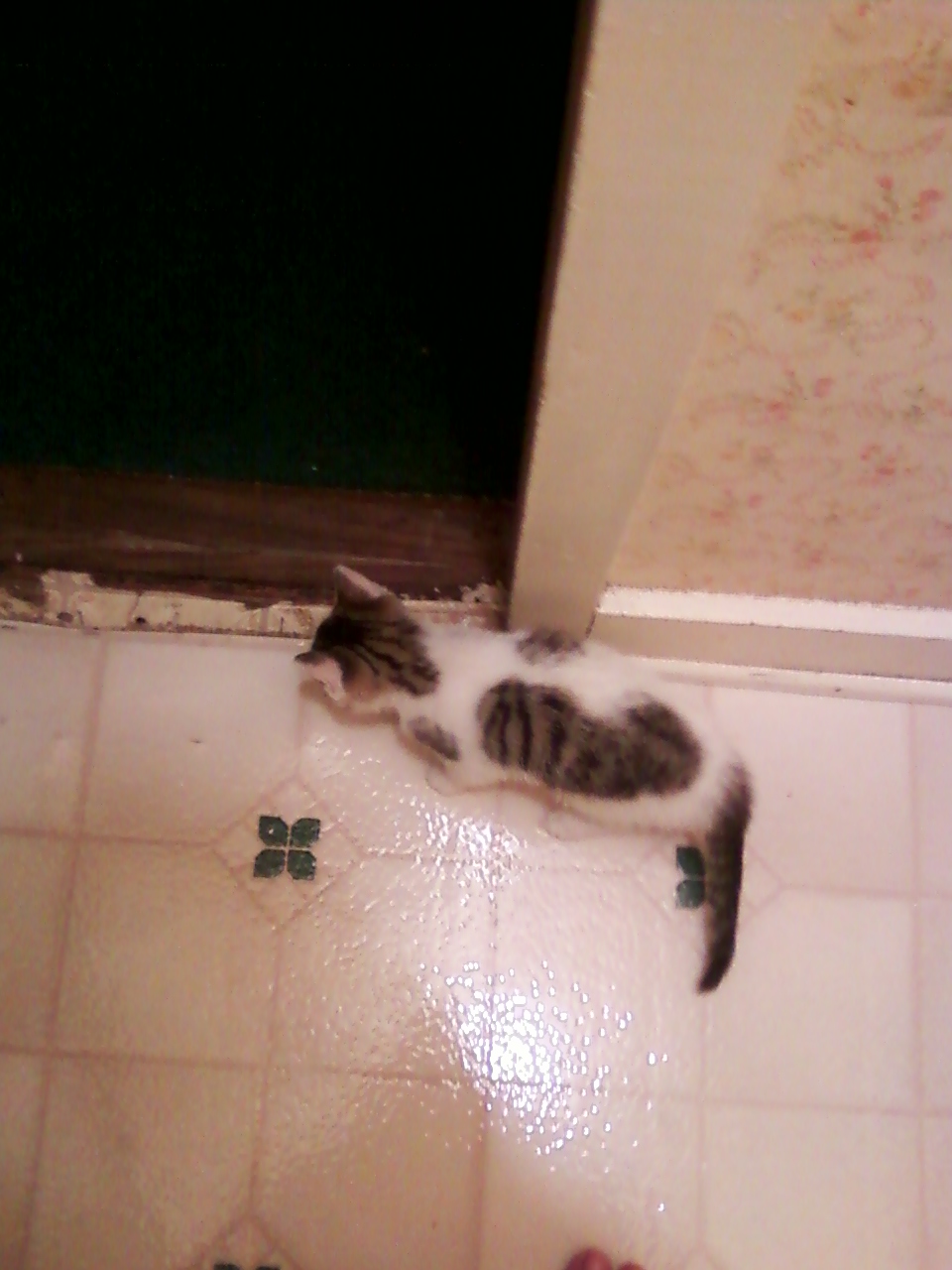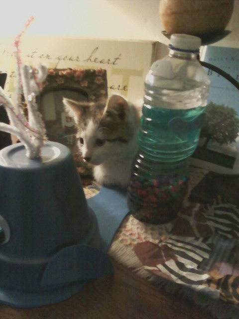 Shali bought her into the house and called to ask if we could keep her in the house. The kids claimed they wanted a cat who wasn’t psychotic like Lola. Lola has her moments. But with a cutie like this, who could say no?