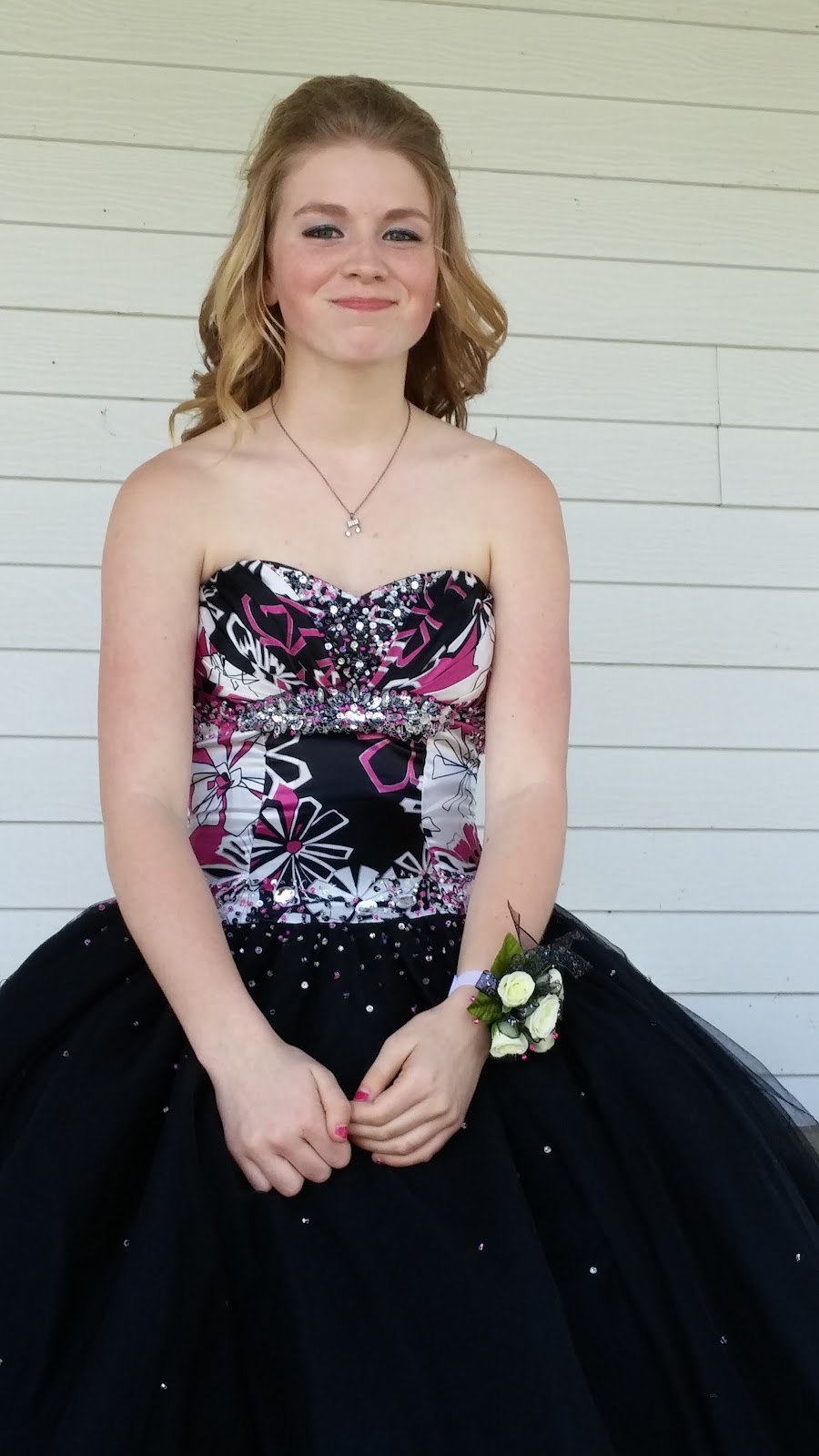 Paige went to prom! She is only a freshman, but her date was a junior. Here is the pretty girl in all her finery: