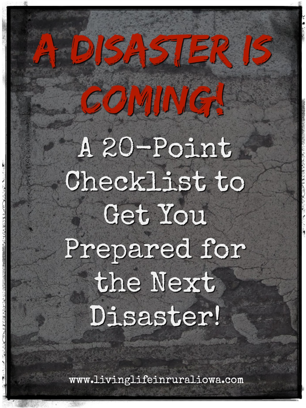 A Disaster is Coming! A 20-Point Checklist to Get You Prepared for the Next Disaster!
